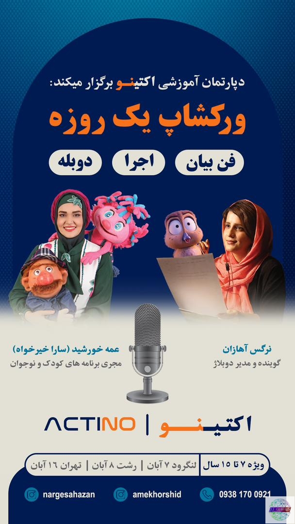 گیرا آنلاین ؛ورکشاپ تخصصی «فن بیان و دوبله کودکانه» با هدف ارتقاء مهارتهای ارتباطی و بیانی کودکان، در سه شهر رشت، لنگرود و تهران برگزار میشود.