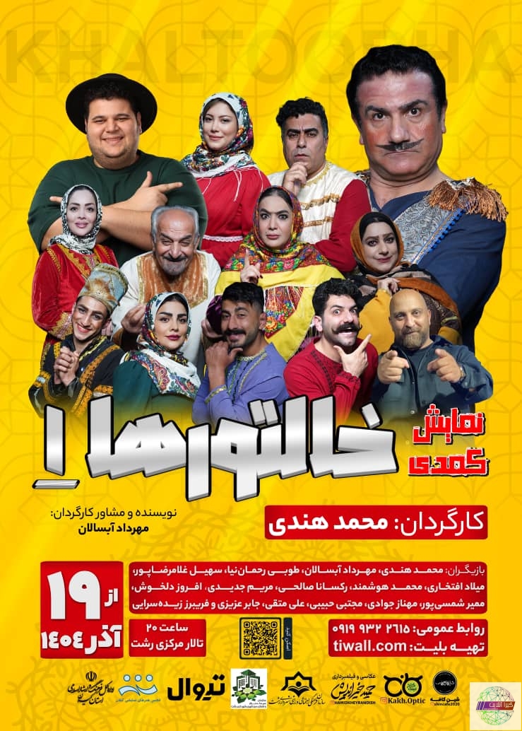 نمایش کمدی «خالتورها ۱» از ۱۹ آذر ۱۴۰۴ در تالار مرکزی رشت روی صحنه میرود. این اثر نمایشی به نویسندگی و تهیهکنندگی مهرداد آبسالان و کارگردانی محمد هندی تولید شده و با حضور جمعی پرشمار از بازیگران و عوامل گیلانی اجرا خواهد شد.